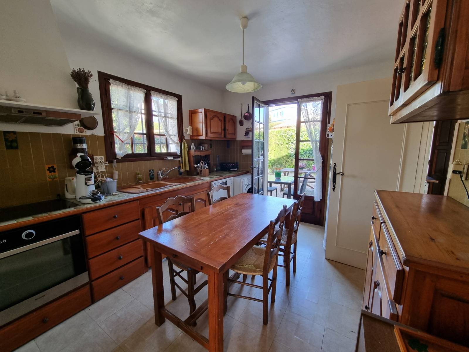 Au rez de chaussée, elle se compose d'une entrée, d'un séjour de 28m² avec cheminée, d'une cuisine indépendante, d'une grande buanderie et d'un WC indépendant.