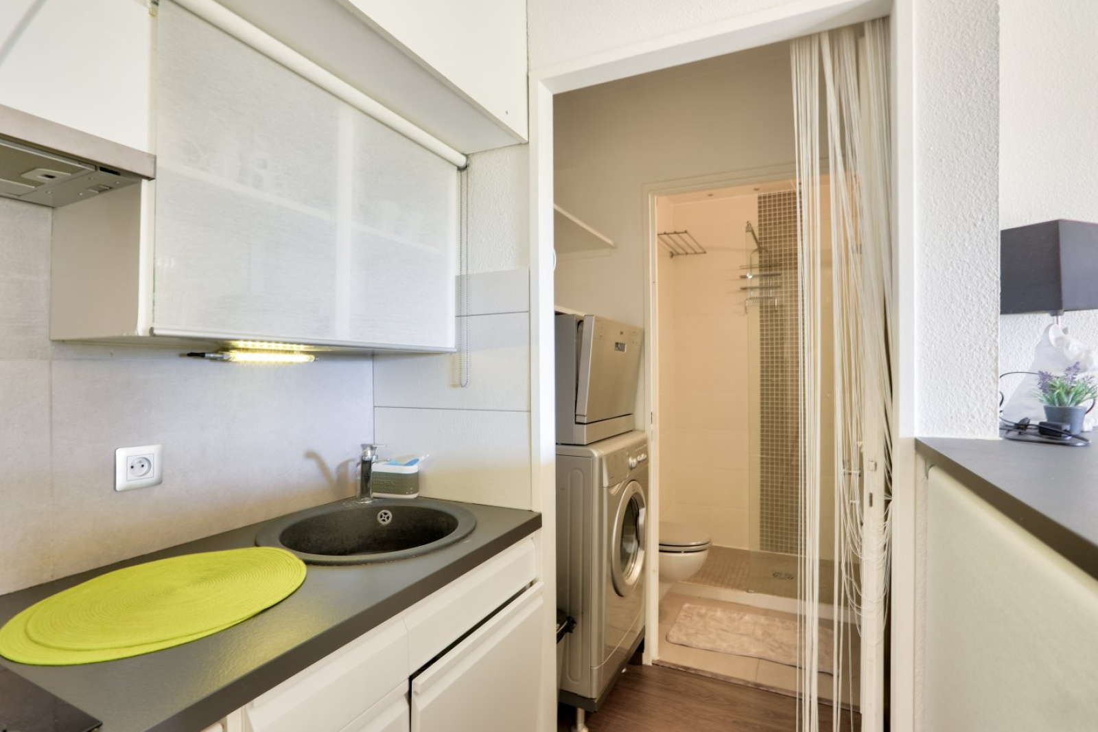 Dans une résidence sécurisée de standing au calme avec piscine, à deux pas des commodités et des plages, charmant studio de 22 m² avec sa terrasse profonde sans vis à vis.