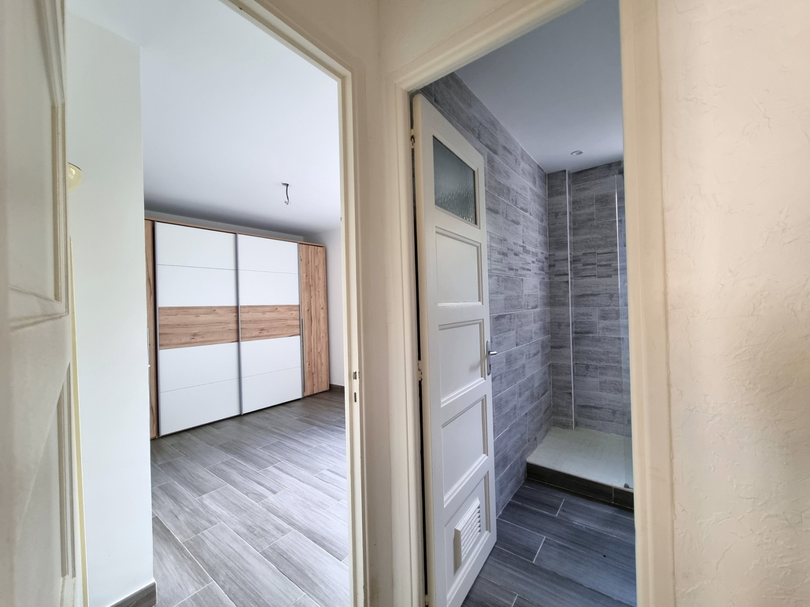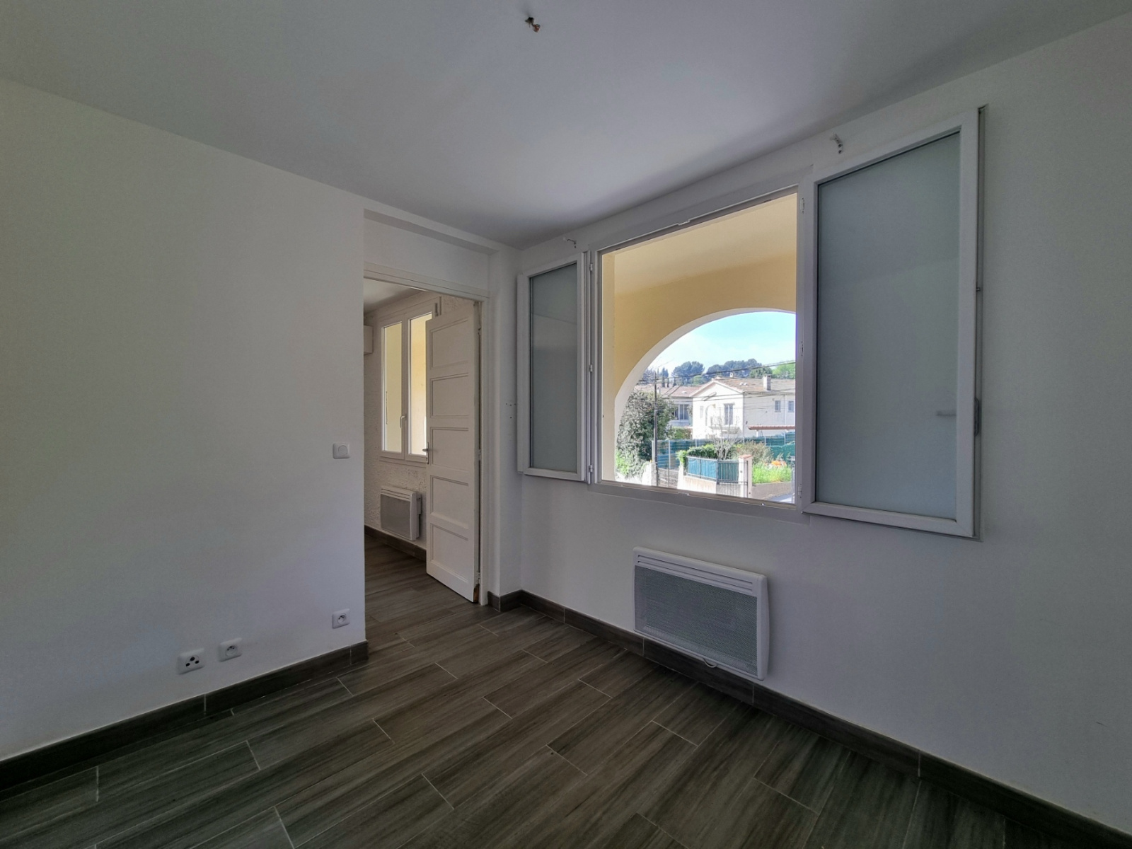 Cet appartement rénové se compose d'un séjour climatisé, d'une cuisine équipée, d'une chambre avec placards, d'un coin nuit/bureau, d'une salle de douche et d'un WC indépendant.