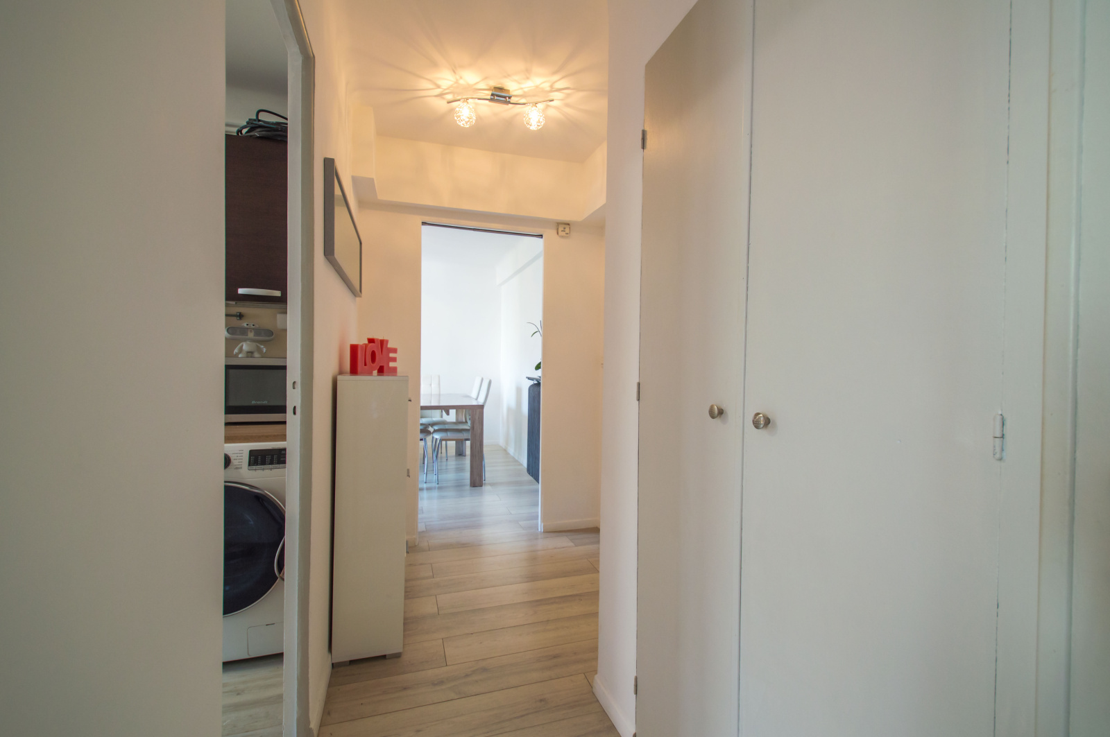 Vous allez être conquis par sa situation idéale, au calme, proche des commodités, commerces, plages, parc, autoroute et aéroport mais également par son agencement et ses annexes, un véritable hall d'entrée et son grand placard, un séjour, une cuisine indépendante, une chambre, un balcon avec une vue dégagée, une douche à l'italienne avec Wc et une cave en sous-sol.