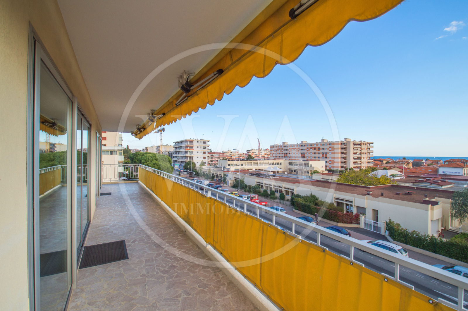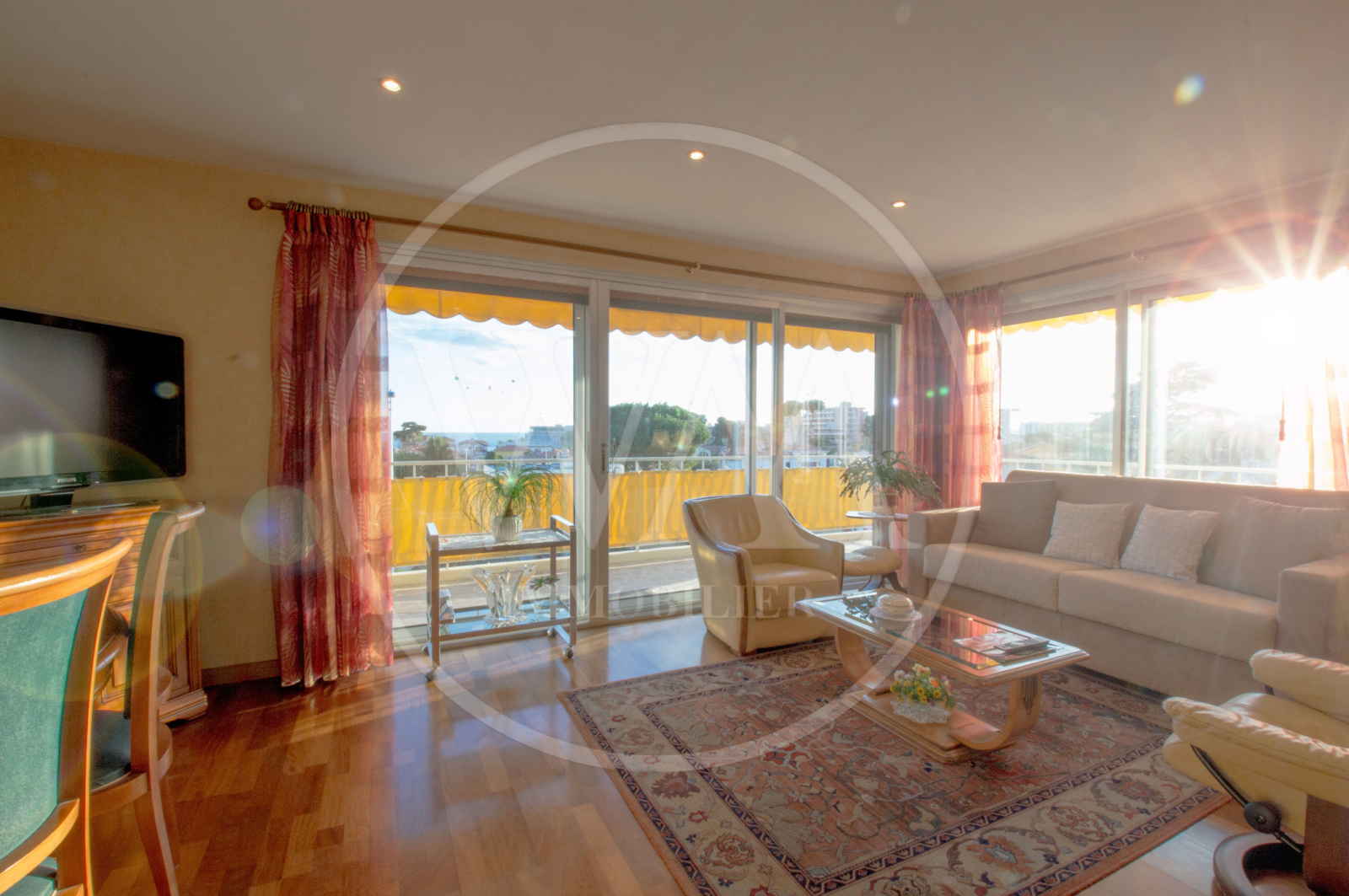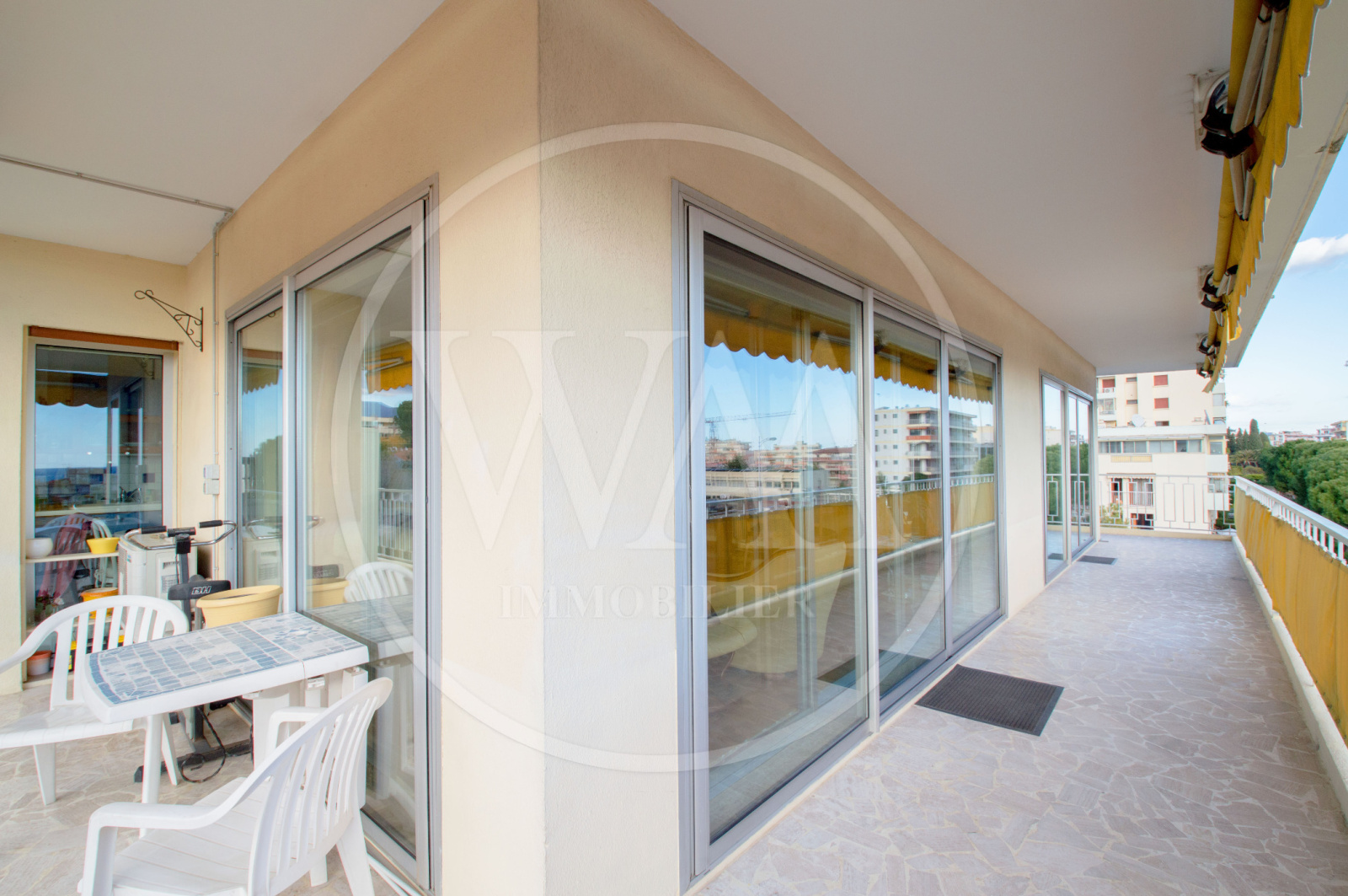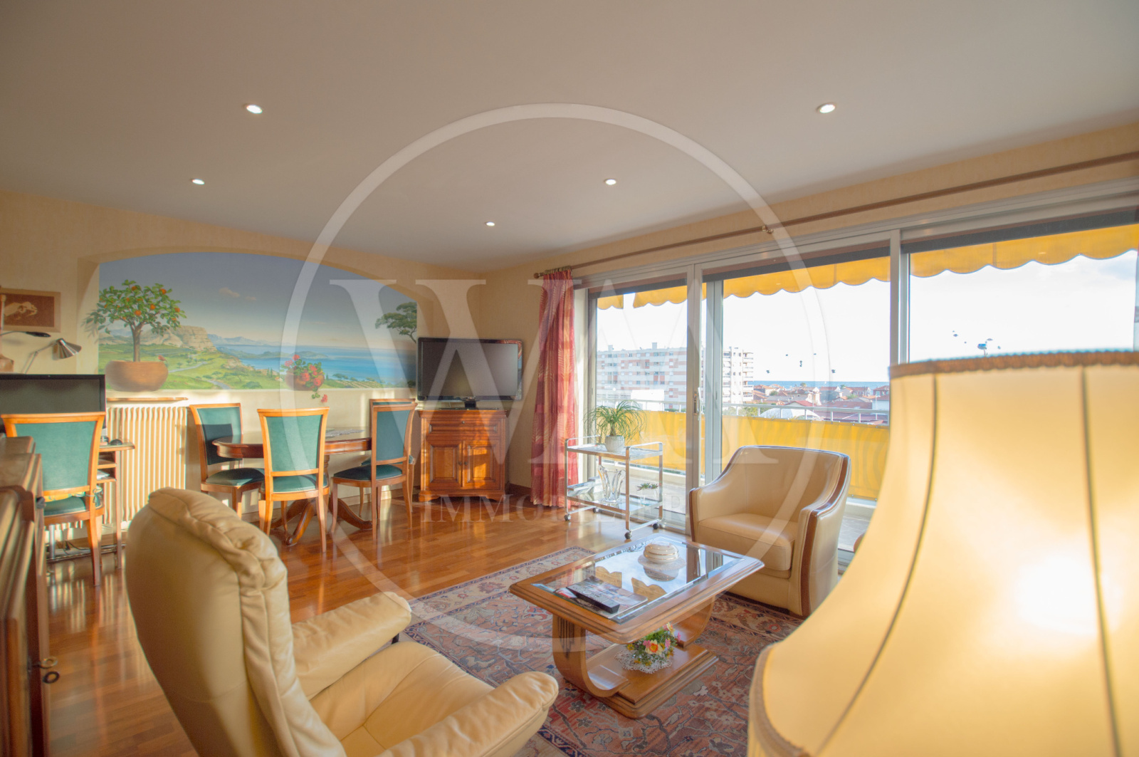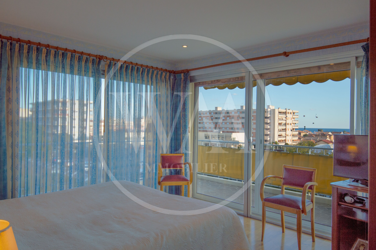 Rare, appartement d'angle comprenant trois expositions, une terrasse profonde de plus de 40 m² donnant sur une magnifique vue mer, parking collectif attribué et une cave.