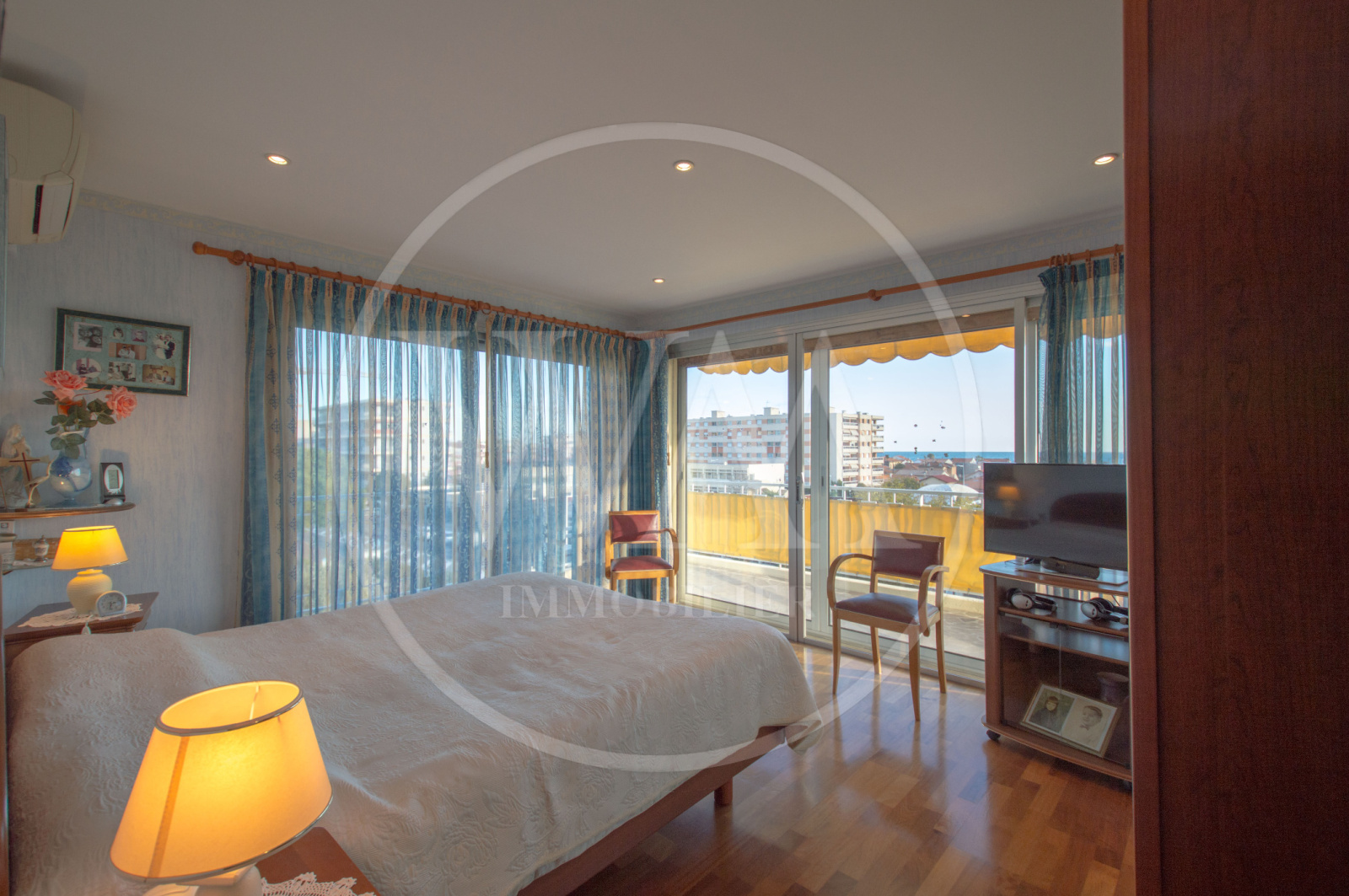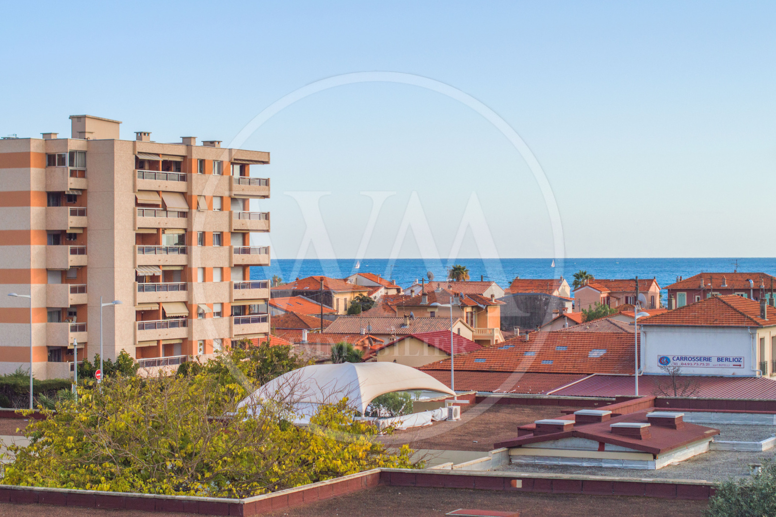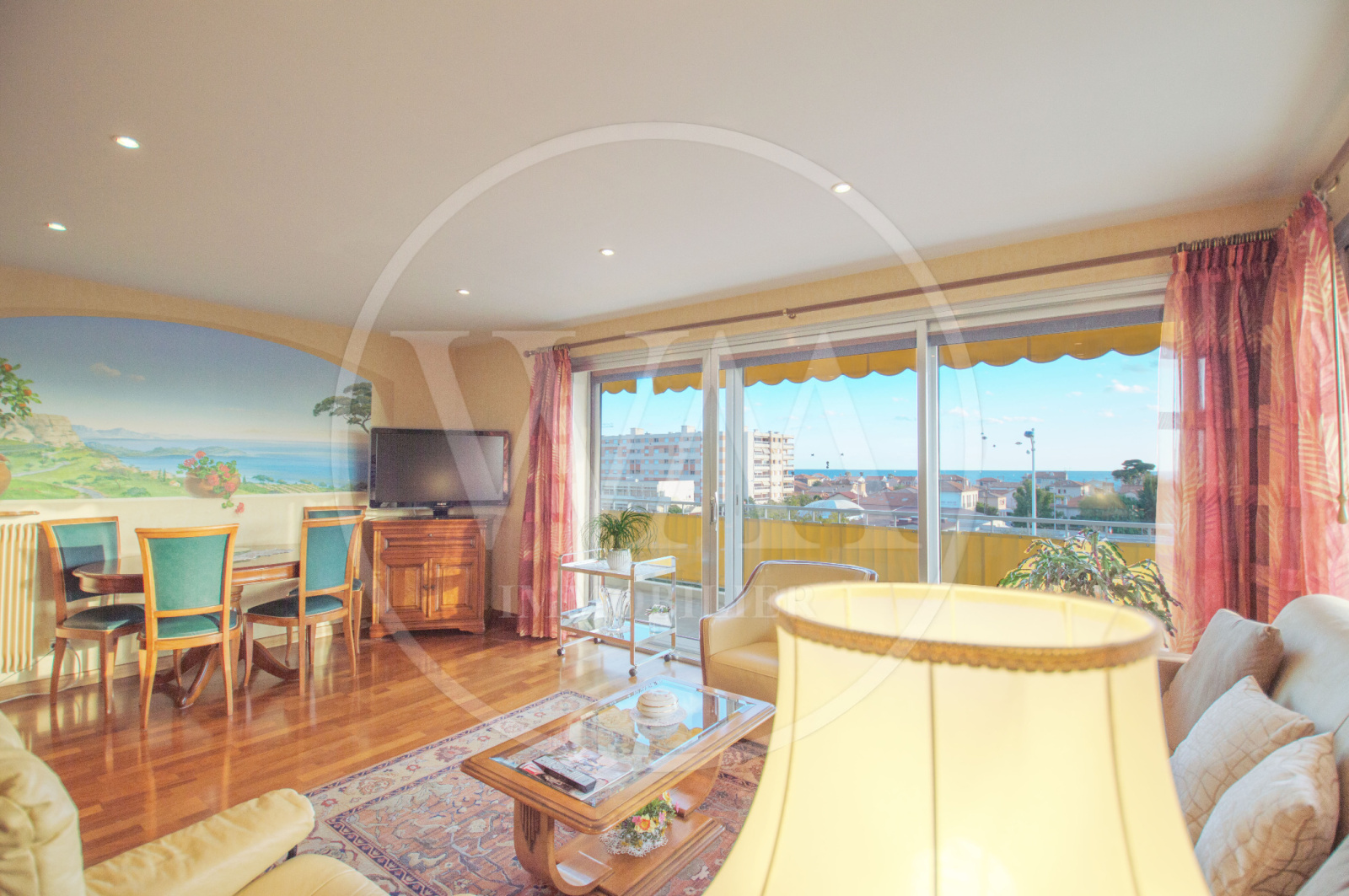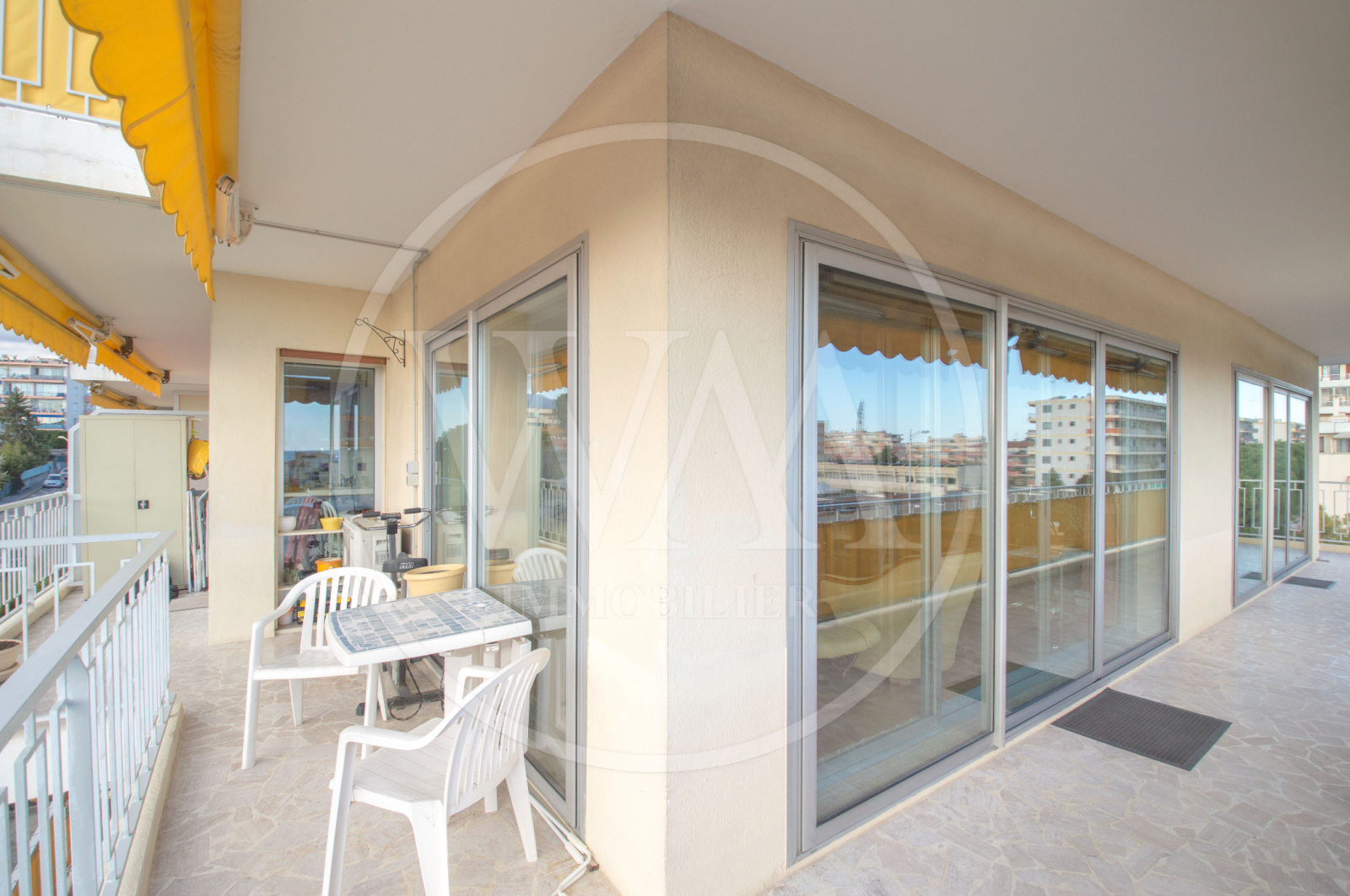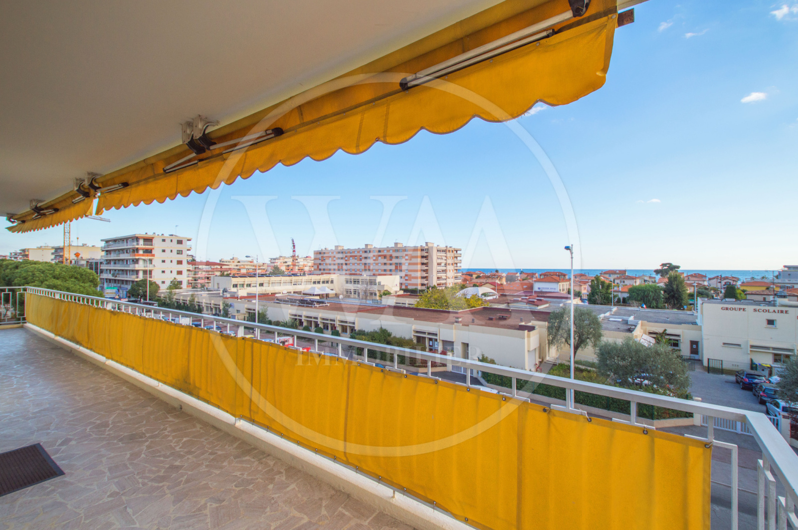 Rare, appartement d'angle comprenant trois expositions, une terrasse profonde de plus de 40 m² donnant sur une magnifique vue mer, parking collectif attribué et une cave.