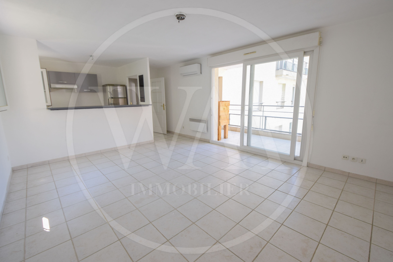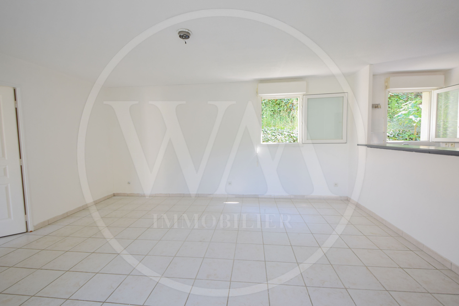 Ce bien se compose d'une entrée, d'une cuisine ouverte sur un séjour de 23 m² climatisé donnant sur une terrasse profonde, exposée sud-ouest.
