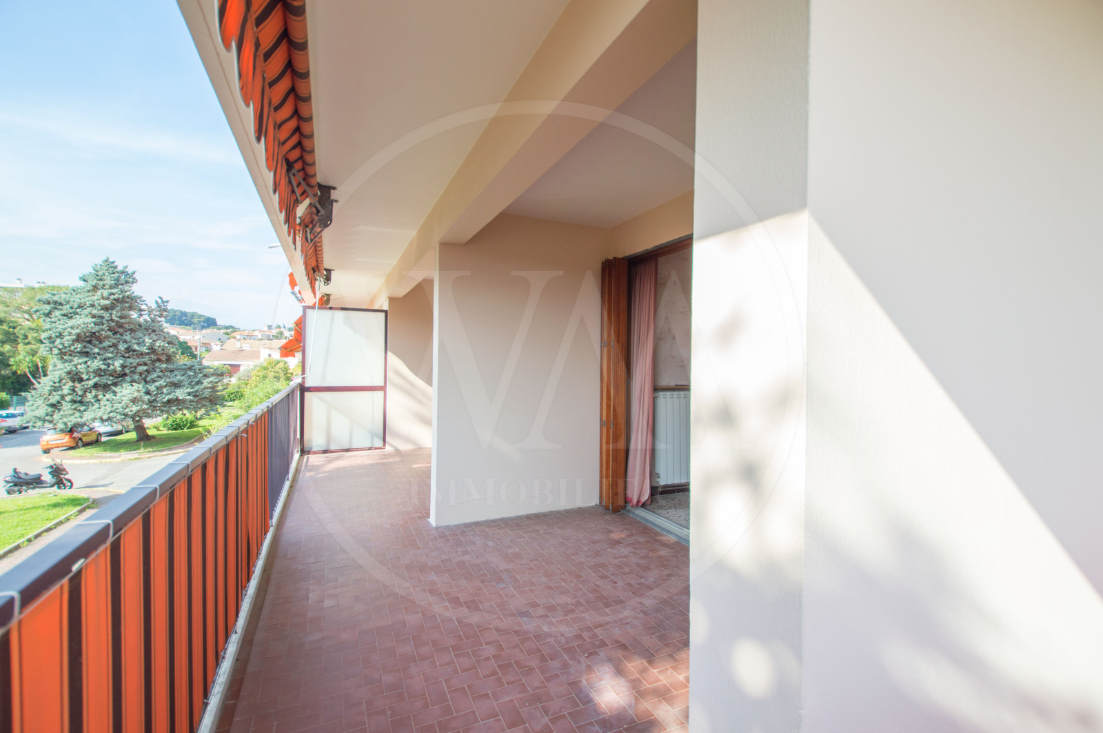 Appartement traversant de 80 m² avec terrasse et balcon de 25 m² exposé Est/Ouest, un hall d'entrée et dégagement, un séjour donnant sur une magnifique terrasse, une cuisine indépendante,