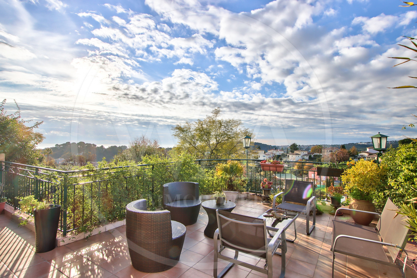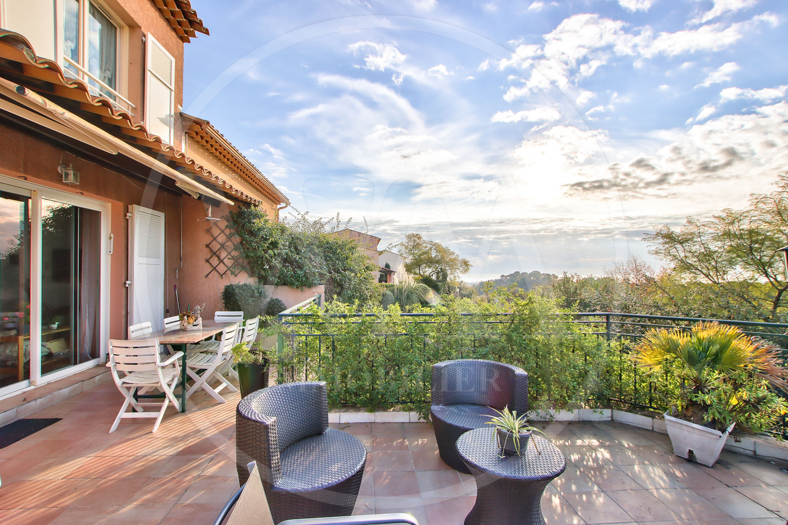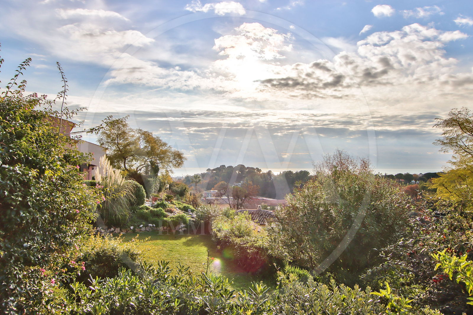 Vous allez être séduit par cette superbe villa aux trois expositions vue mer et collines avec terrasses et jardins de 121 m² au sol avec un terrain arboré d'environ 400 m².