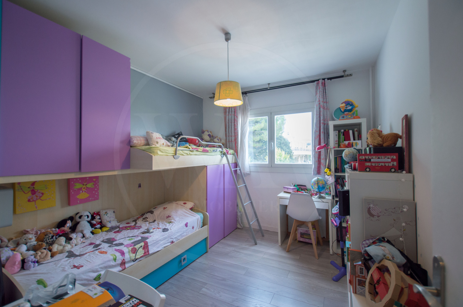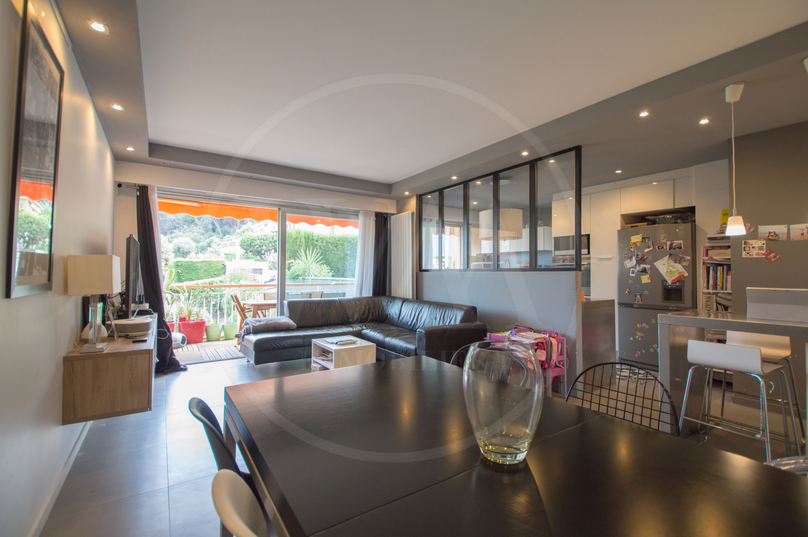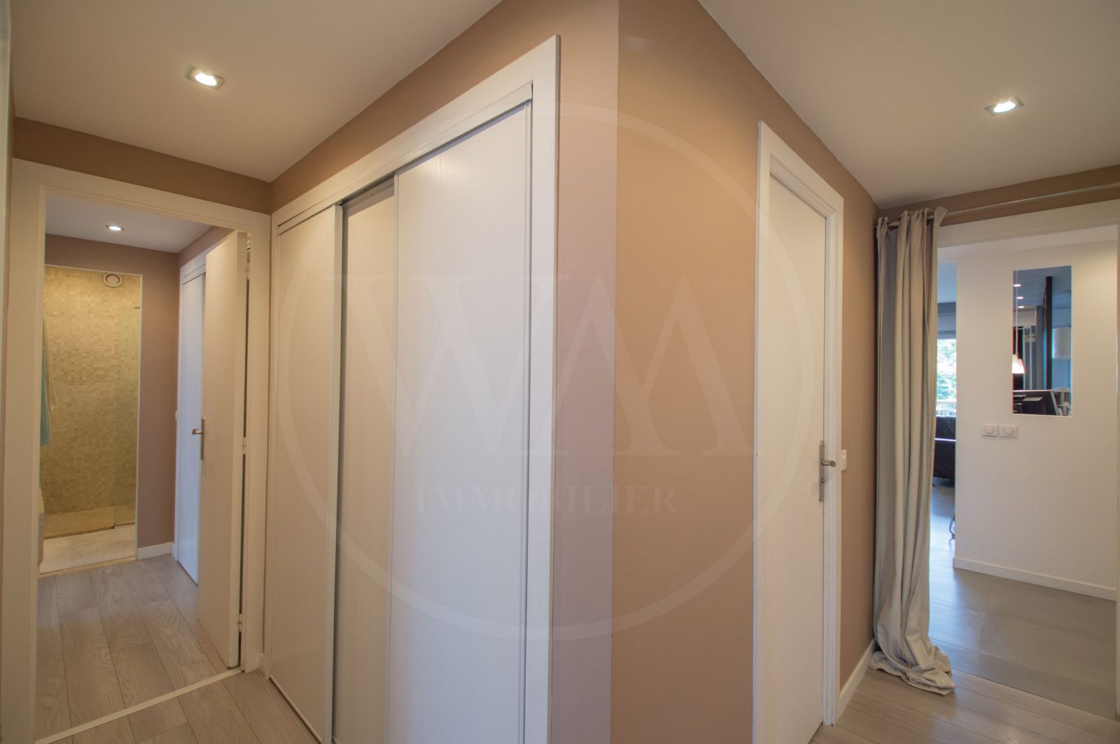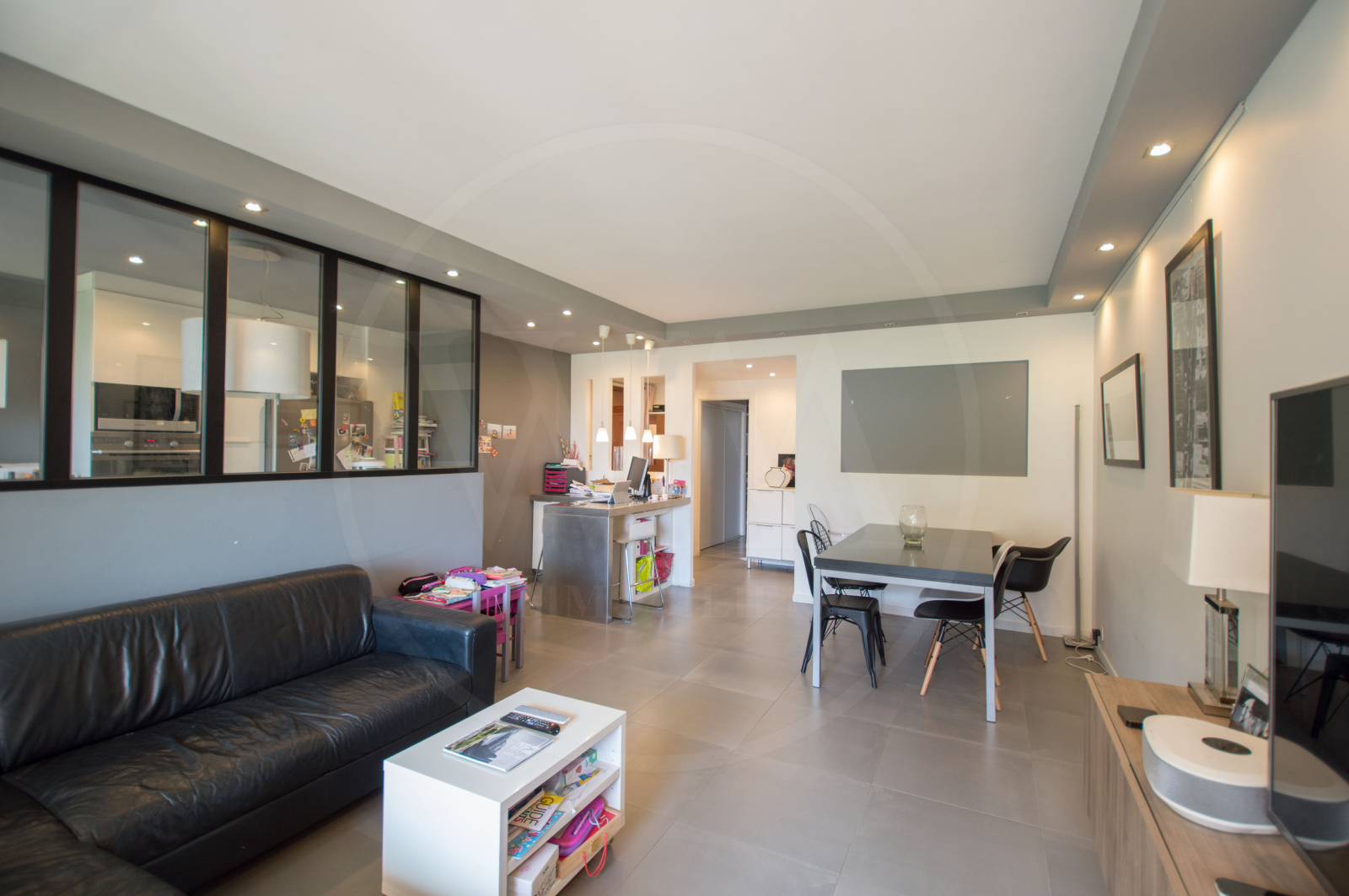 Ce bien se compose d'une entrée, une cuisine équipée subtilement séparée du salon par une verrière (pièces principale avec cuisine : 32m2). Un dégagement avec rangement donne accès aux 3 chambres dont une suite parentale avec sa salle de bain et son dressing, son coin lingerie. Une seconde salle de bain et un wc séparé avec lave mains.