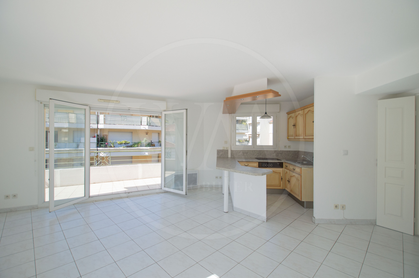 composé d'un hall d'entrée, une pièce principale avec cuisine US, une chambre avec salle de bains, un wc indépendant, des placards, deux terrasses et un parking privé en sous sol.