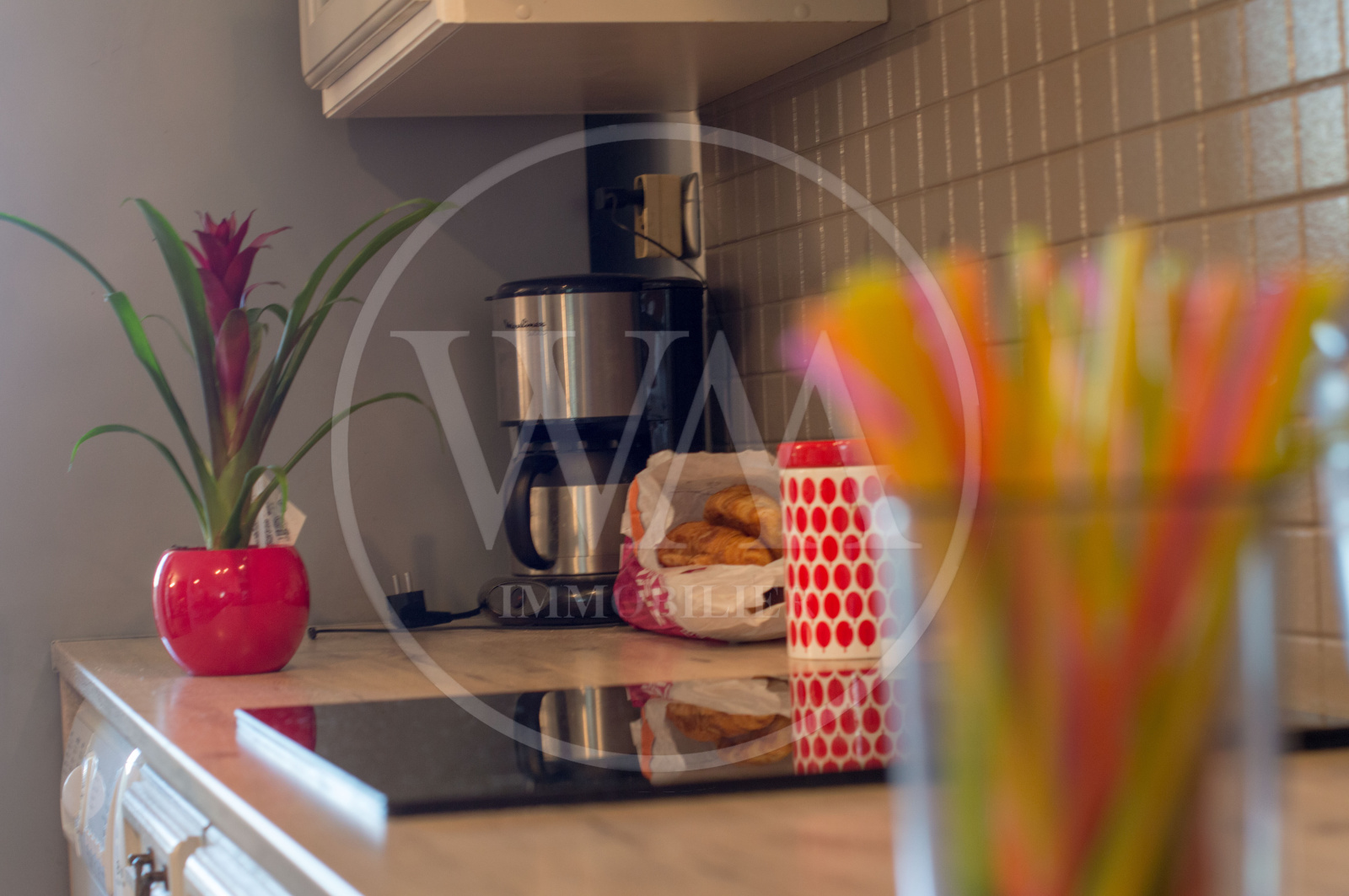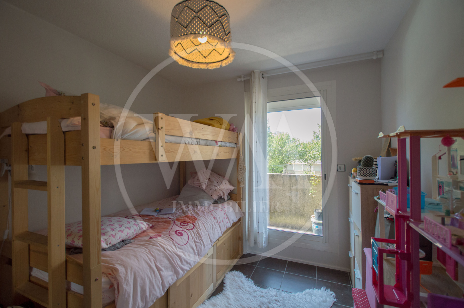 Ce bien est composé d'un hall d'entrée, d'un séjour avec cuisine équipée ouverte sur loggia (vue sur le stade Méarelli), d'un dégagement , d'un dressing, de deux chambres au calme avec balcon, d'une salle de bains et d'un Wc indépendant.