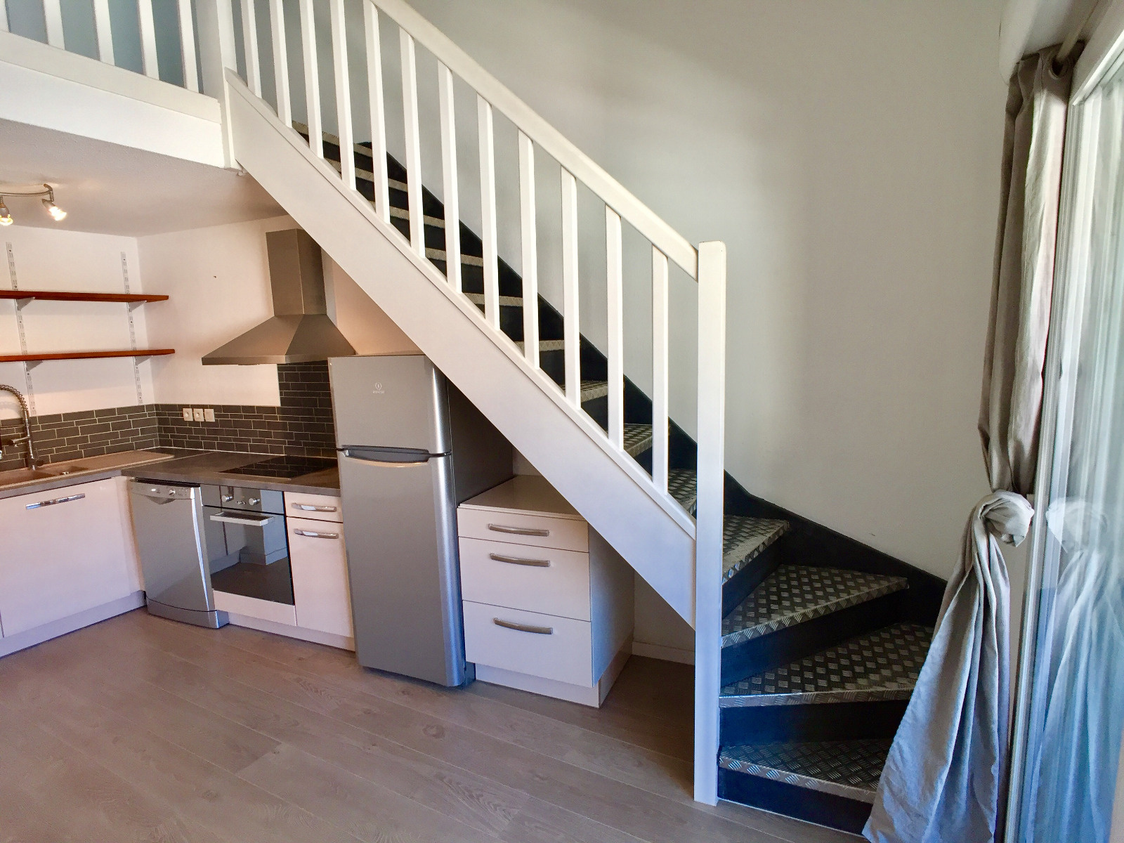 Composé d'un hall d'entrée, d'un séjour cathédrale avec cuisine américaine équipée, d'une chambre avec placard, d'une grande pièce à l'étage (chambre, salon ou salle de jeux), d'une salle de douche, d'un wc indépendant et d'une terrasse.