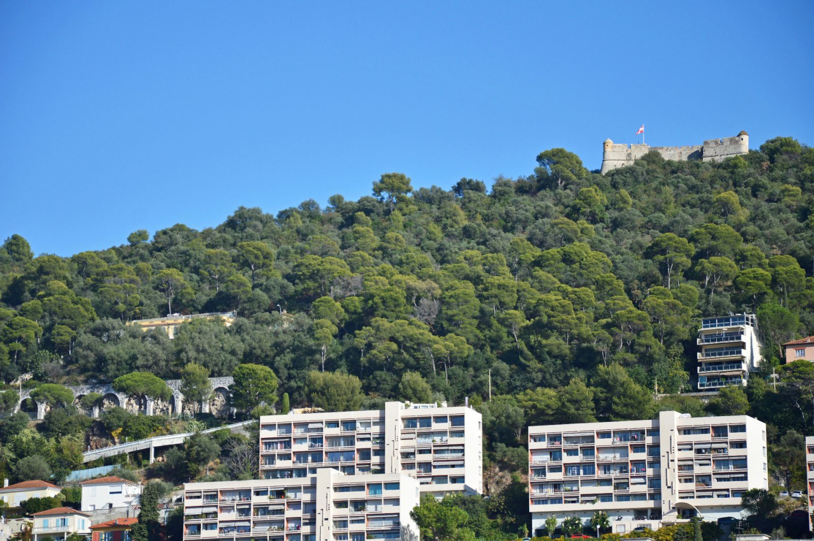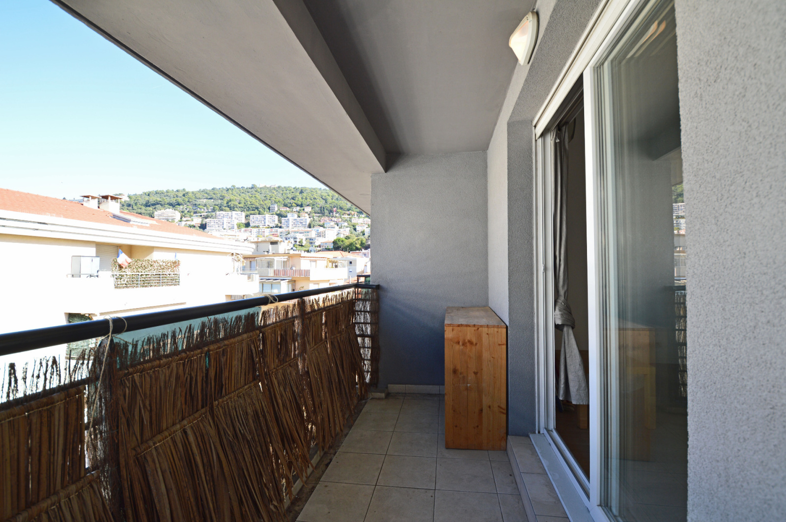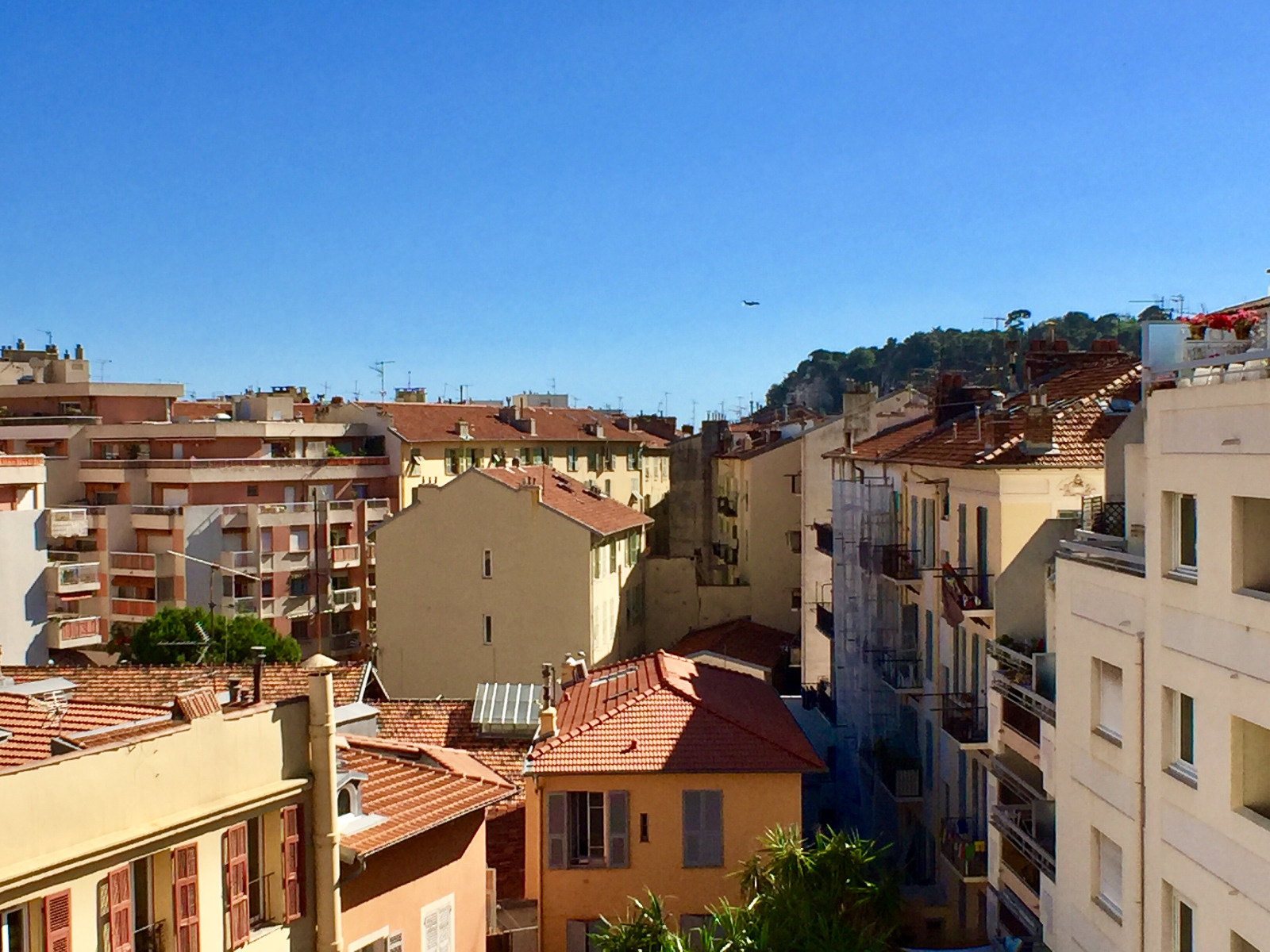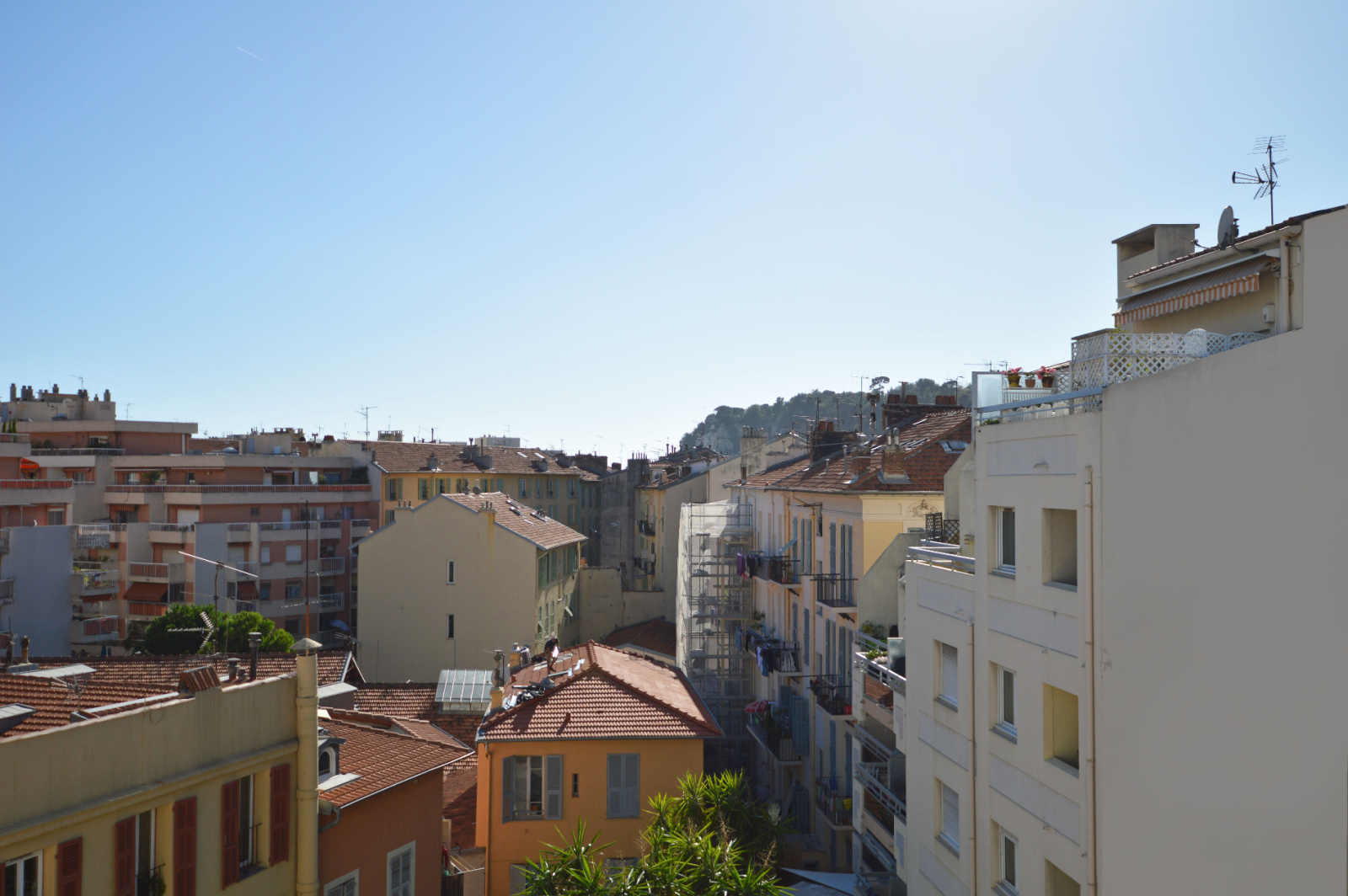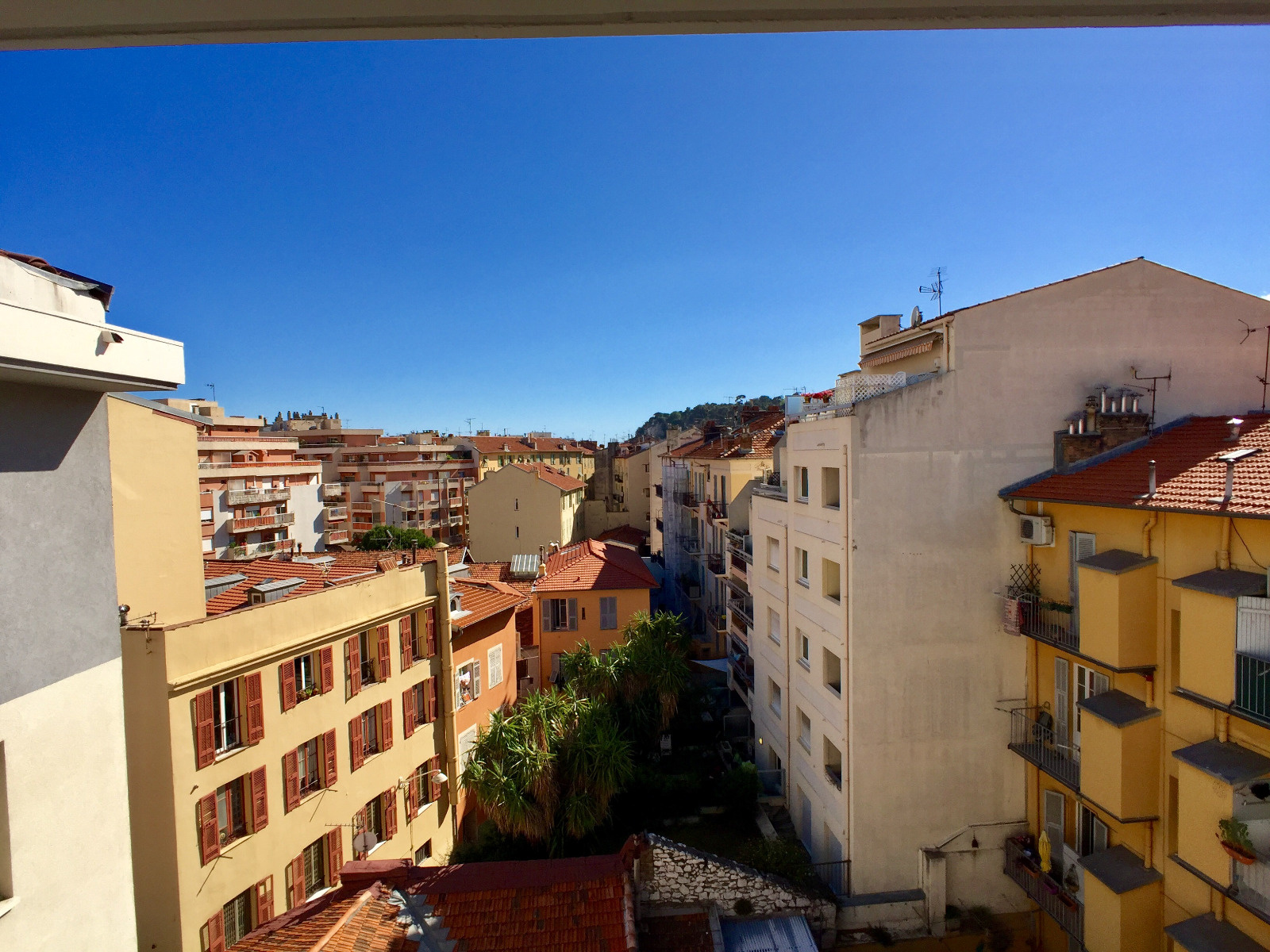 Appartement avec une agréable vue sur la colline du Mont Boron, celle du château de Nice et les toits de la ville.
