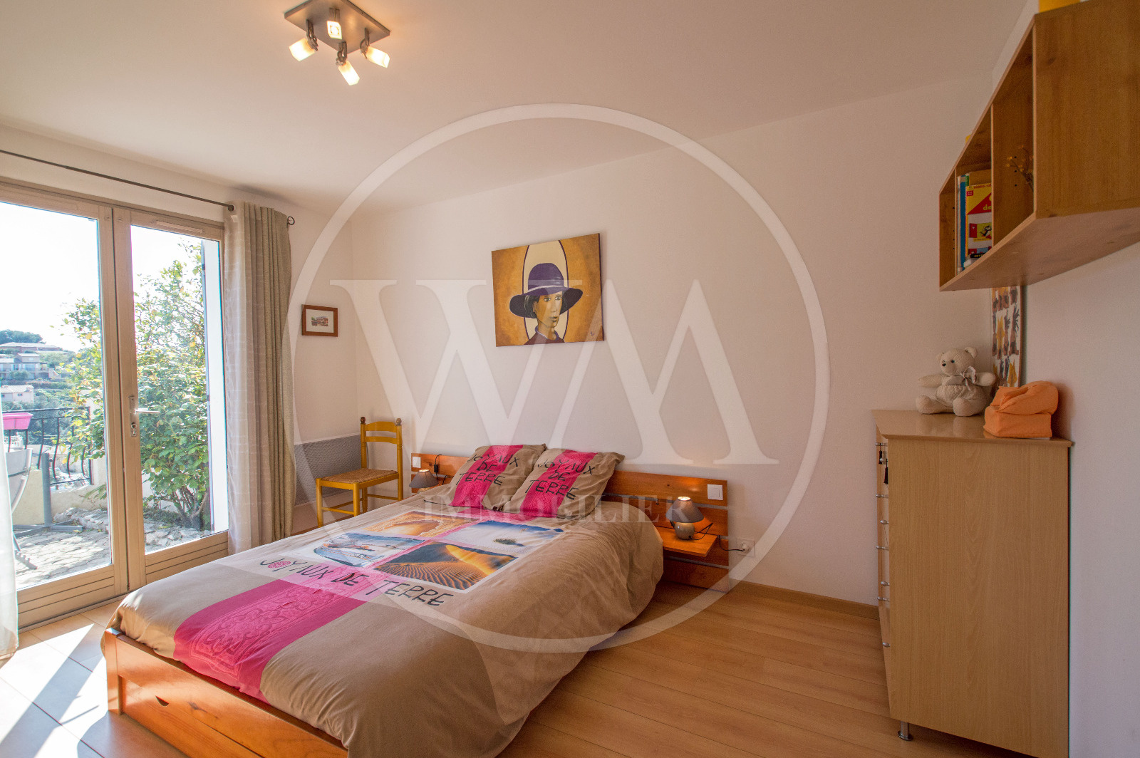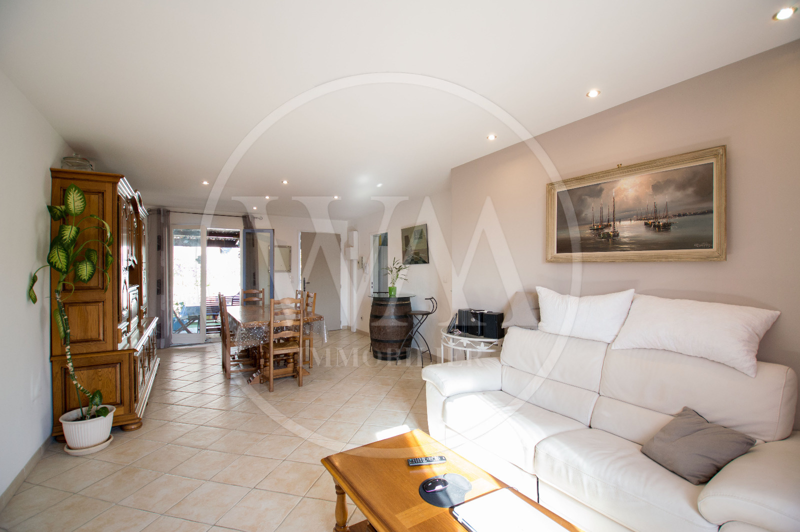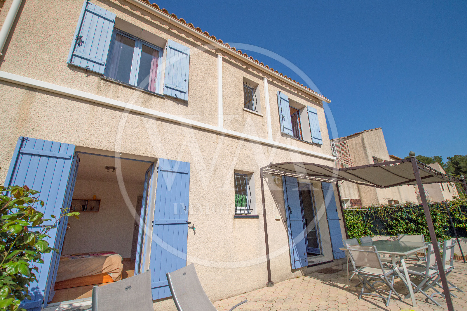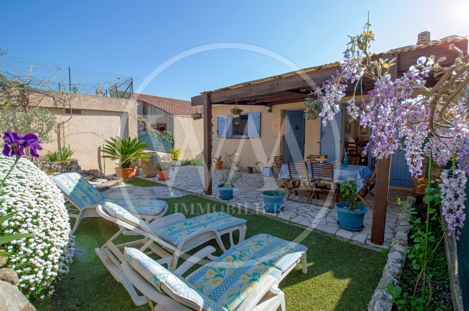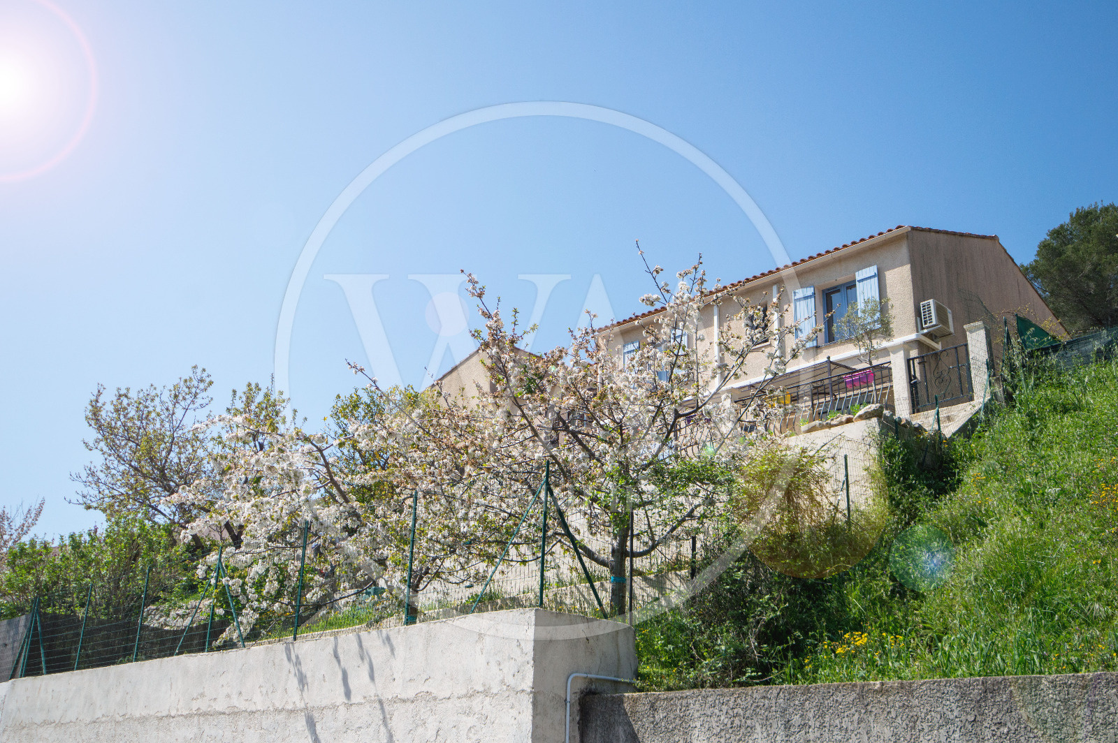 Dans un Domaine de Standing et fort d'histoire où nous n'avons nul besoin de rappeler que Marcel Pagnol avait choisi de s'établir pendant près de trente ans pour ses qualités et la beauté des paysages, un véritable havre de paix situé dans les collines entre la Gaude et Cagnes sur Mer. Le Domaine de l'étoile comprend une école maternelle et élémentaire, un hôtel 4*, un centre sportif et des espaces boisés. Jolie villa de trois à quatre pièces de 90 m², jumelée d'un côté, sur un niveau, en très bon état d'entretien avec grandes terrasses et jardins, vue dégagée sur les collines du domaine et les montagnes. Composée d'un séjour de 30 m², d'une cuisine indépendante, d'un dégagement, d'une chambre et d'une salle de douche avec wc, d'une terrasse avec jardin et d'emplacements de stationnement pour deux véhicules. Au rez de chaussée un appartement de deux pièces avec son entrée indépendante, possibilité location saisonnière, composé d'un séjour avec cuisine US, d'une salle de douche avec wc, d'une chambre avec placard donnant sur une grande terrasse et un jardin en restanques complanté de cerisiers également au rez de chaussée une buanderie et un bureau. Les deux niveaux sont communiquant par un escalier intérieur et peuvent ainsi être réaménagés en 4 pièces.