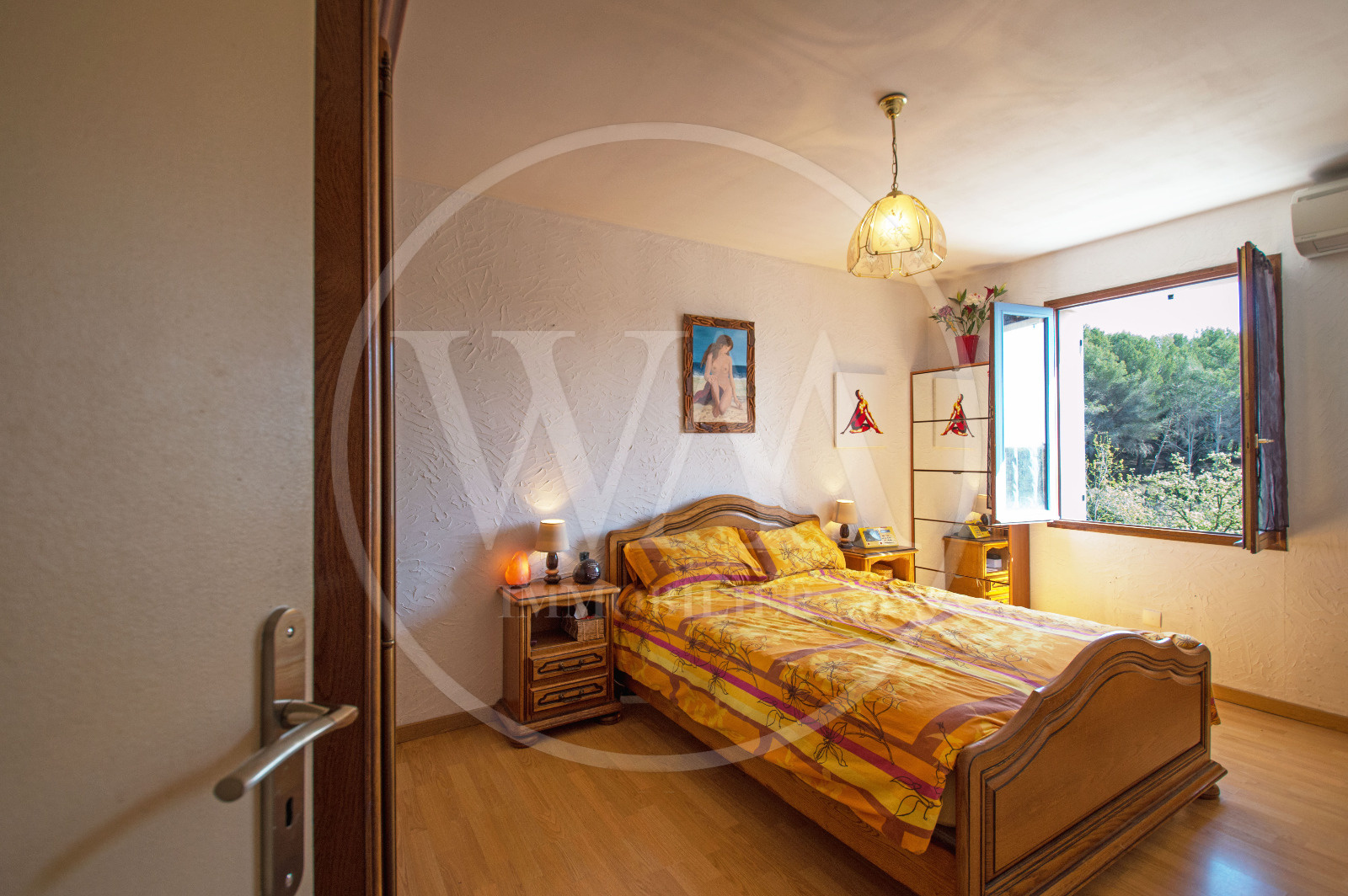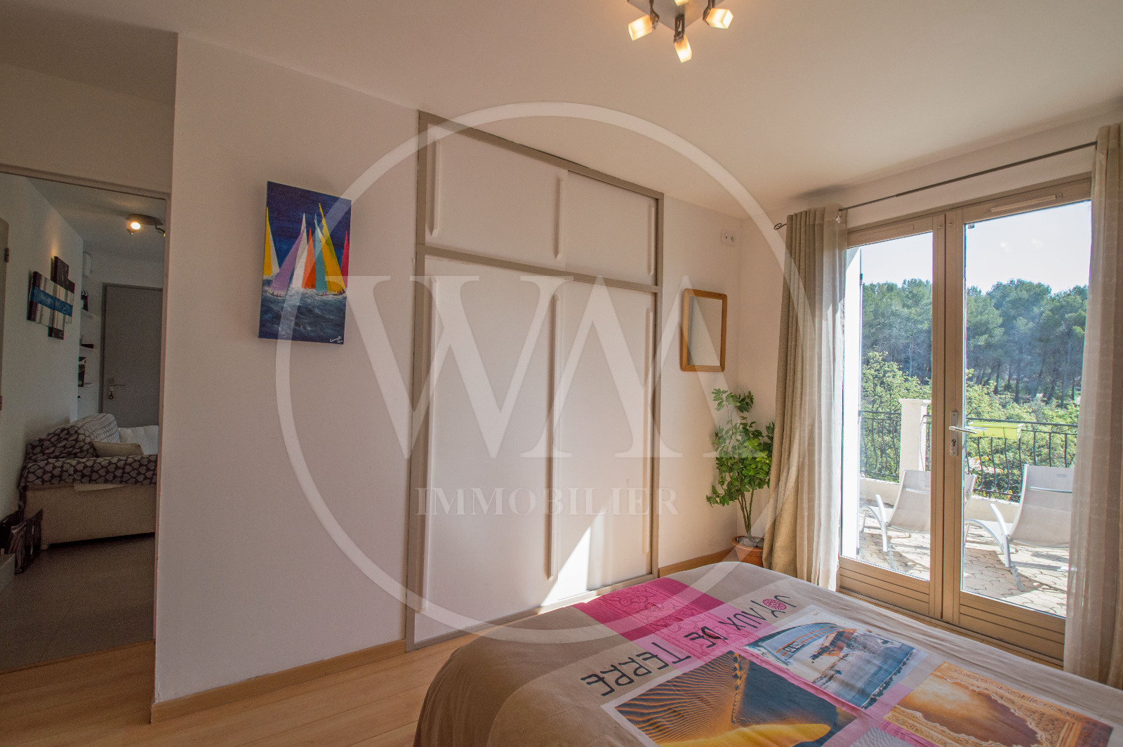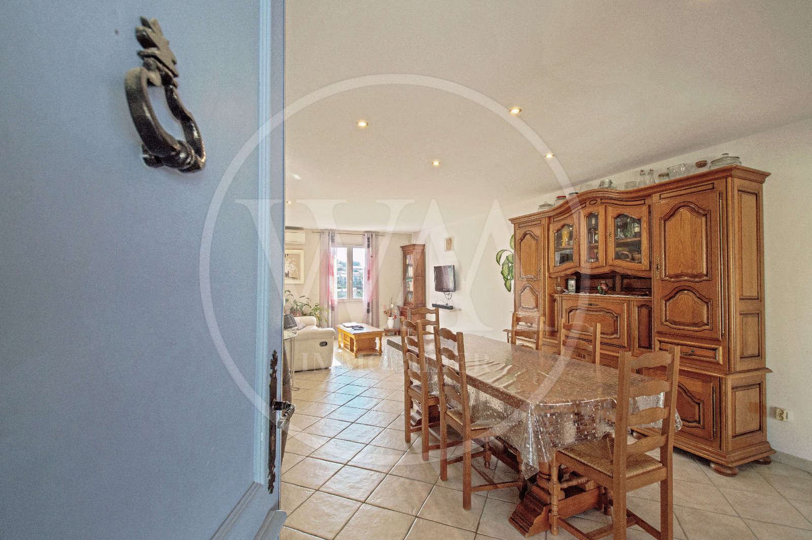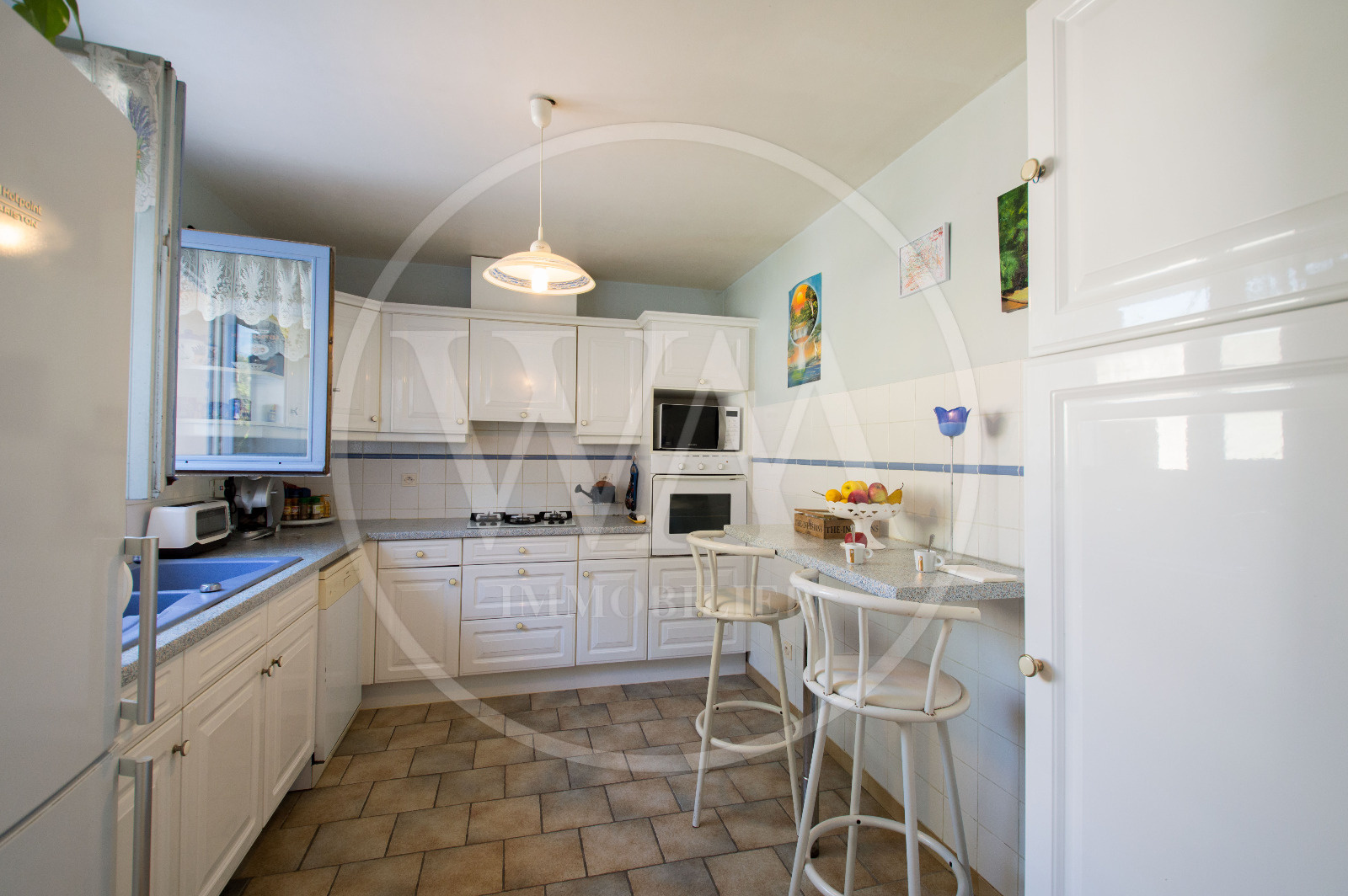 Dans un Domaine de Standing et fort d'histoire où nous n'avons nul besoin de rappeler que Marcel Pagnol avait choisi de s'établir pendant près de trente ans pour ses qualités et la beauté des paysages, un véritable havre de paix situé dans les collines entre la Gaude et Cagnes sur Mer. Le Domaine de l'étoile comprend une école maternelle et élémentaire, un hôtel 4*, un centre sportif et des espaces boisés. Jolie villa de trois à quatre pièces de 90 m², jumelée d'un côté, sur un niveau, en très bon état d'entretien avec grandes terrasses et jardins, vue dégagée sur les collines du domaine et les montagnes. Composée d'un séjour de 30 m², d'une cuisine indépendante, d'un dégagement, d'une chambre et d'une salle de douche avec wc, d'une terrasse avec jardin et d'emplacements de stationnement pour deux véhicules. Au rez de chaussée un appartement de deux pièces avec son entrée indépendante, possibilité location saisonnière, composé d'un séjour avec cuisine US, d'une salle de douche avec wc, d'une chambre avec placard donnant sur une grande terrasse et un jardin en restanques complanté de cerisiers également au rez de chaussée une buanderie et un bureau. Les deux niveaux sont communiquant par un escalier intérieur et peuvent ainsi être réaménagés en 4 pièces.