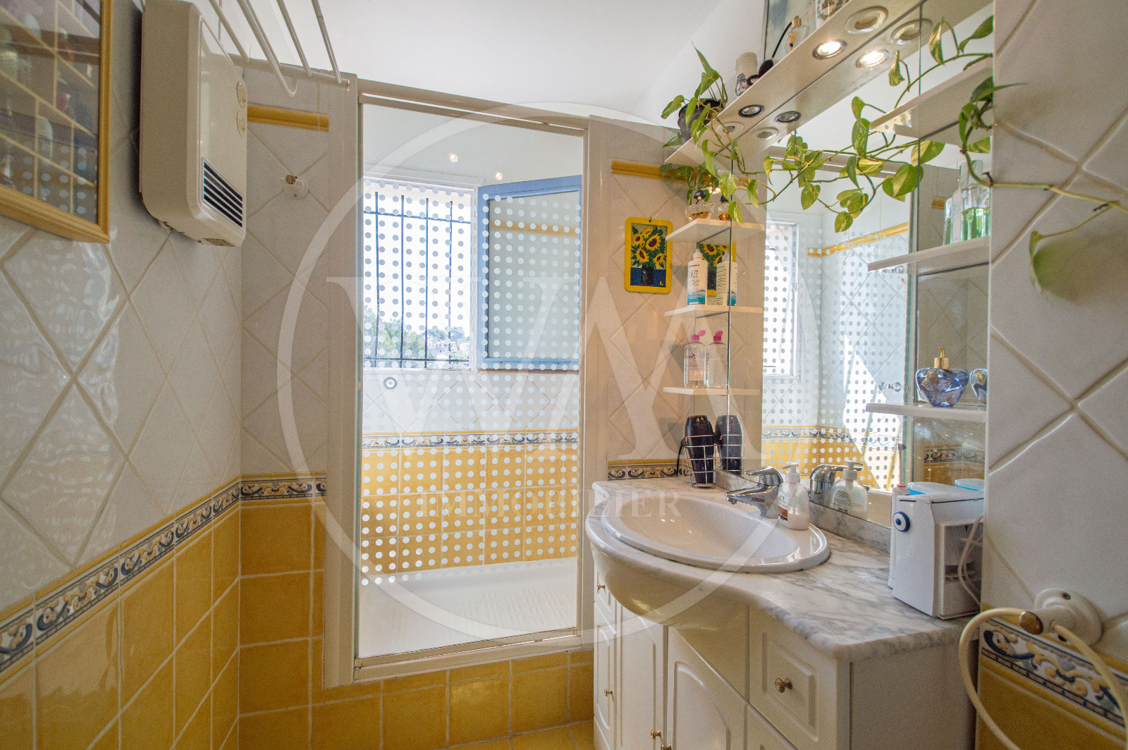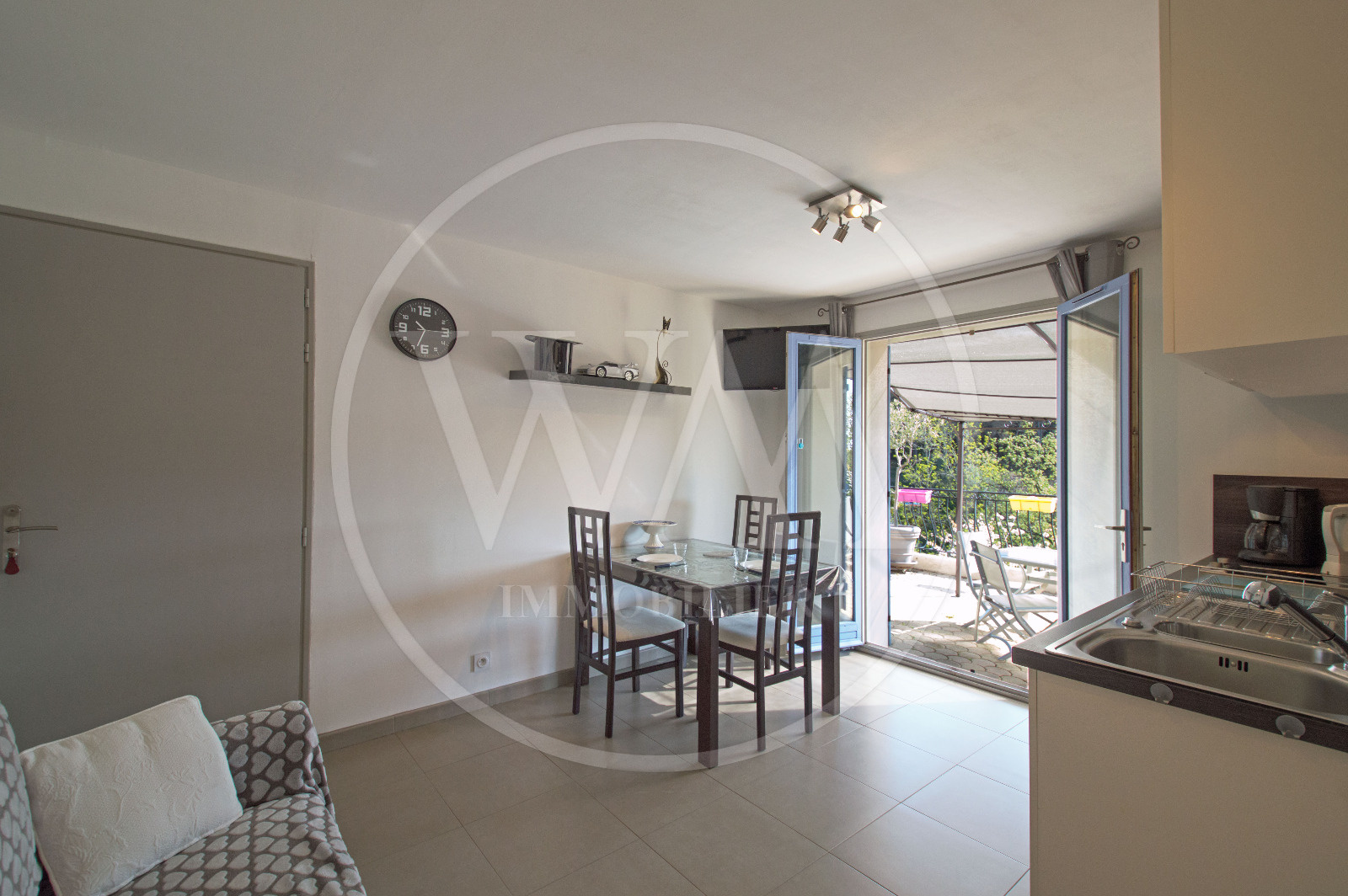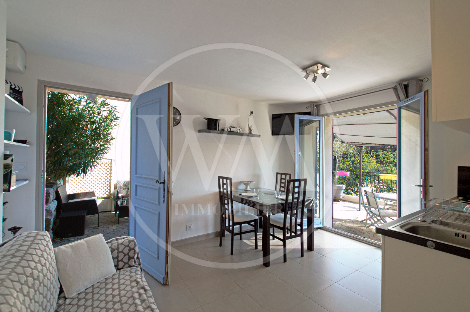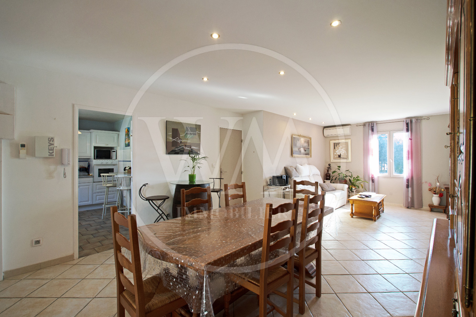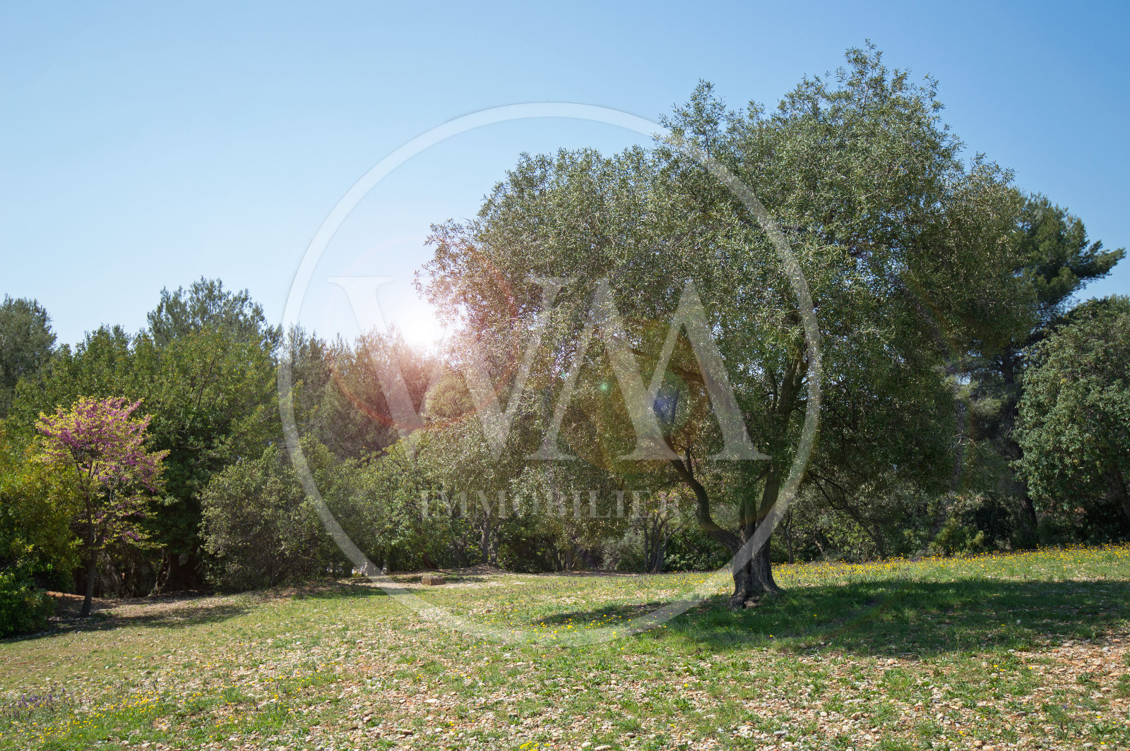 Dans un Domaine de Standing et fort d'histoire où nous n'avons nul besoin de rappeler que Marcel Pagnol avait choisi de s'établir pendant près de trente ans pour ses qualités et la beauté des paysages, un véritable havre de paix situé dans les collines entre la Gaude et Cagnes sur Mer. Le Domaine de l'étoile comprend une école maternelle et élémentaire, un hôtel 4*, un centre sportif et des espaces boisés. Jolie villa de trois à quatre pièces de 90 m², jumelée d'un côté, sur un niveau, en très bon état d'entretien avec grandes terrasses et jardins, vue dégagée sur les collines du domaine et les montagnes. Composée d'un séjour de 30 m², d'une cuisine indépendante, d'un dégagement, d'une chambre et d'une salle de douche avec wc, d'une terrasse avec jardin et d'emplacements de stationnement pour deux véhicules. Au rez de chaussée un appartement de deux pièces avec son entrée indépendante, possibilité location saisonnière, composé d'un séjour avec cuisine US, d'une salle de douche avec wc, d'une chambre avec placard donnant sur une grande terrasse et un jardin en restanques complanté de cerisiers également au rez de chaussée une buanderie et un bureau. Les deux niveaux sont communiquant par un escalier intérieur et peuvent ainsi être réaménagés en 4 pièces.